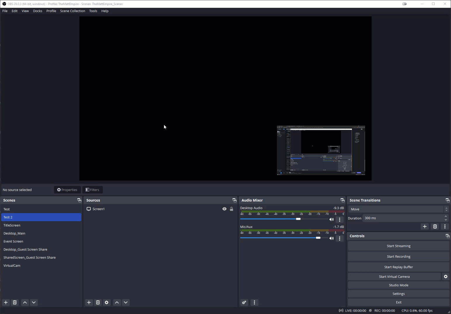 * It is possible to reuse sources you have already created, and if you do this between Scenes you can get some fantastic transition effects as the source will transition to the 'same' one, depending on the transition type. The 'Move' transition is a good example.