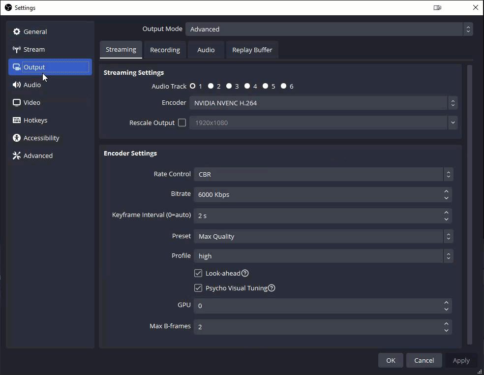 * Note that the Record settings and the Stream Settings can be different. Make sure to set them accordingly.\